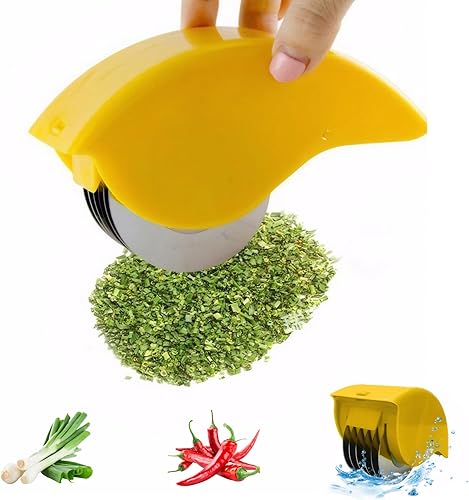 Rouleau à herbes avec 6 lames en acier inoxydable Hachoir à herbes manuel Coupe-herbes amovible et lavable Hachoirs à herbes portables pour coriandre Échalote Persil Coupe-persil Hachoir à coriandre C
