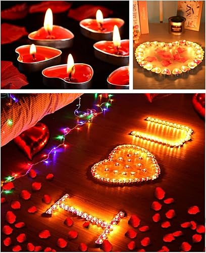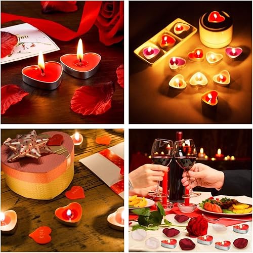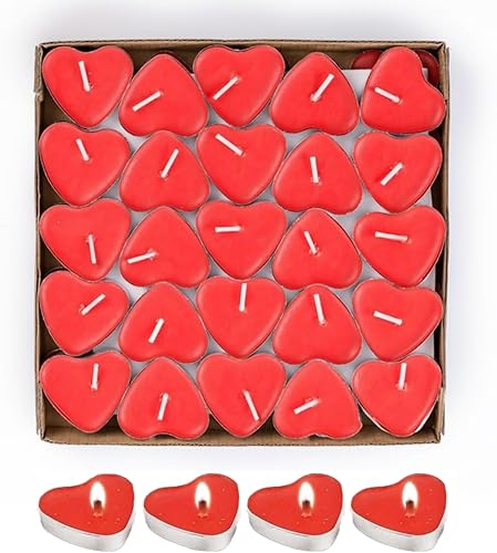 Bougie Coeur,50 Bougies Chauffe-Plat Coeur Rouge Bougies Romantiques Bougies Sans Fuméepour la Saint Valentin,Anniversaire,Suggestion,Fête,Anniversaire