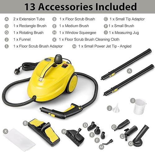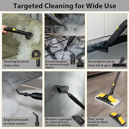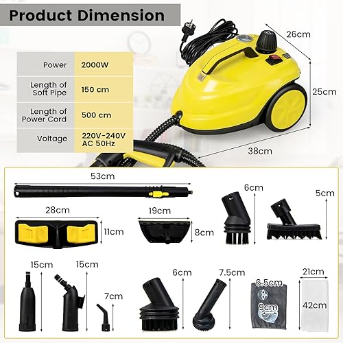 SOARS Nettoyeur Vapeur, Puissance : 2000 W, Pression : 5 Bar, Température : 160 ℃, Temps de Chauffe : 8 Min, Réservoir : 1,8 L, Surface : 108 M², pour Canapé, Sol, Cuisine, Jaune