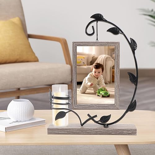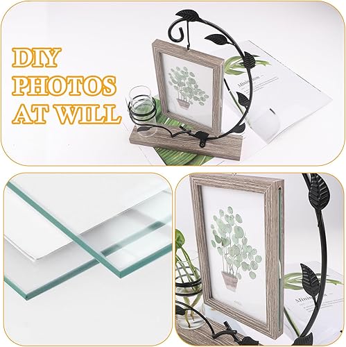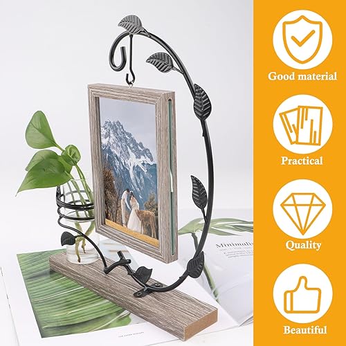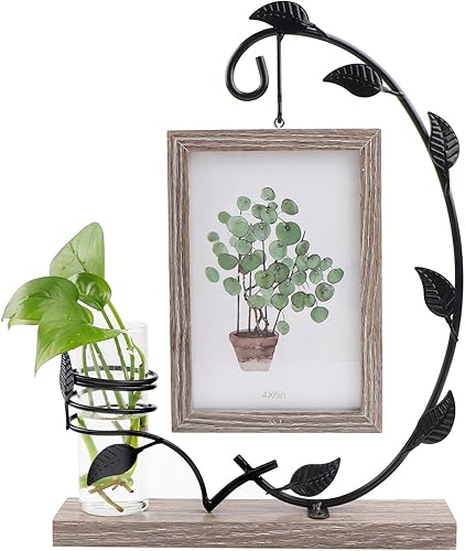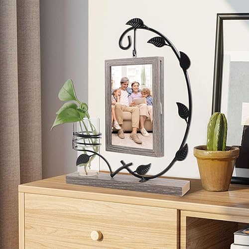 JTgugu Cadre photo en bois 10x15cm avec vase et support en métal Cadre photo double en verre personnalisé Cadre vintage en bois Cadeau photo personnalisé pour Noël mariage famille Idée cadeau, Gris
