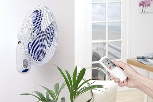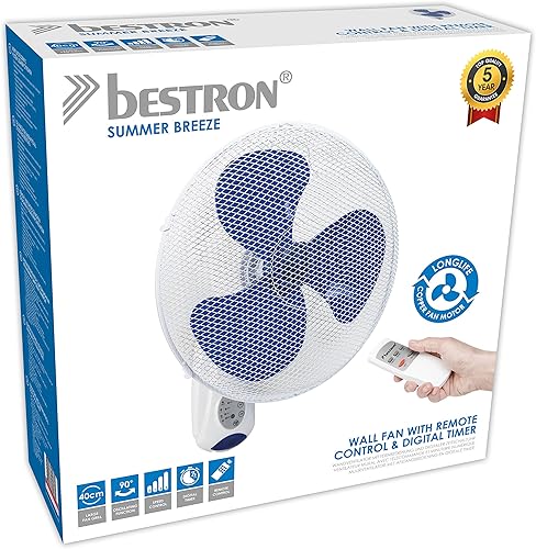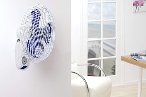 Bestron Ventilateur mural avec télécommande, 7,5 h d'utilisation en continu max., Hauteur : 50 cm, Ø 40 cm, 45 W, Blanc