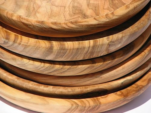 Assiette en bois d'olivier LAMAMMA - Assiette en bois Assiette en bois Assiette Vesper Assiette à salade Bol Assiette à pain Assiette petit-déjeuner en bois d'olivier, grain fin Ø env. 19cm