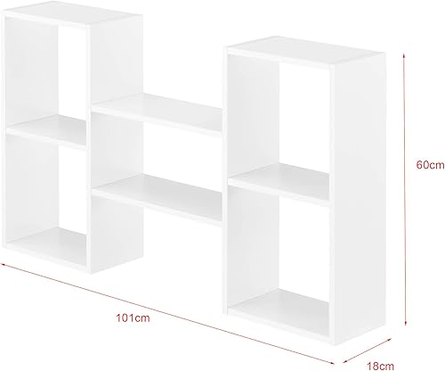 [en.casa] Meuble Mural Design Étagère Flottante Stylée 5 Compartiments de Rangement Capacité de Charge 20 kg Panneau de Particules Mélaminé 101 x 18 x 60 cm Blanc Mat