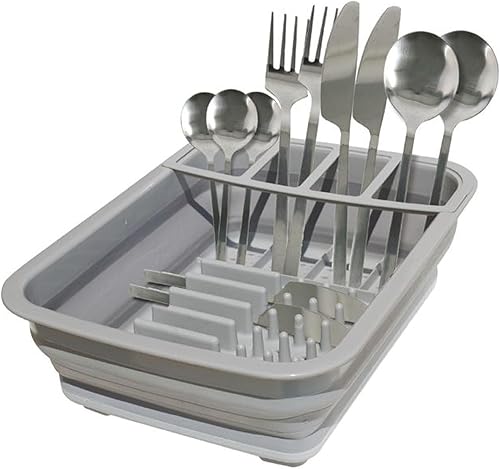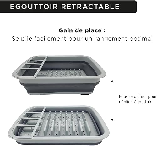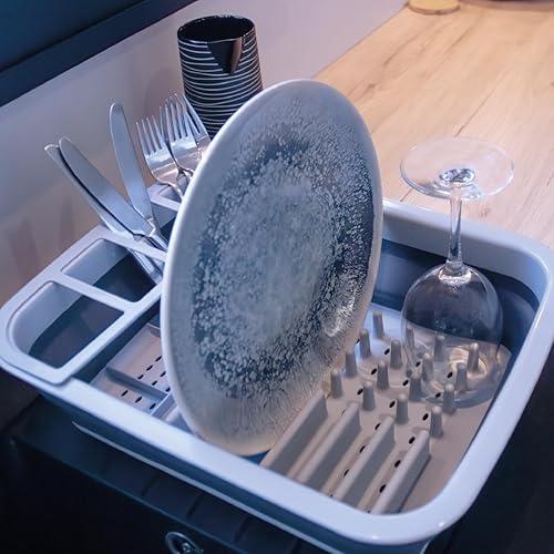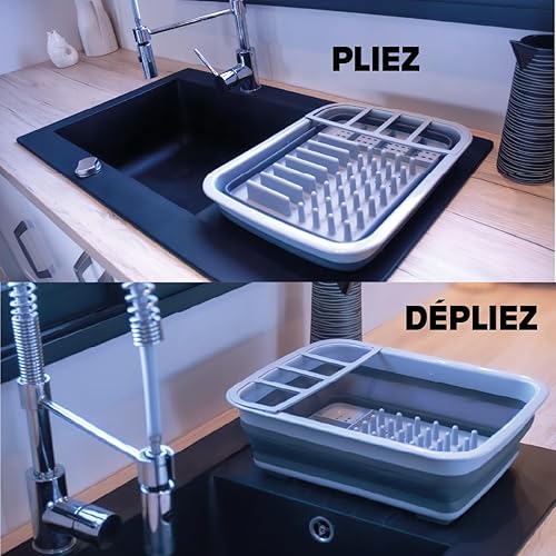 LNT France - Egouttoir Pliable Gris, Facile à Ranger, Antidérapants, Vaisselle Porte-Couverts Pliant, écoulement Optimal - Plastique Silicone Gris