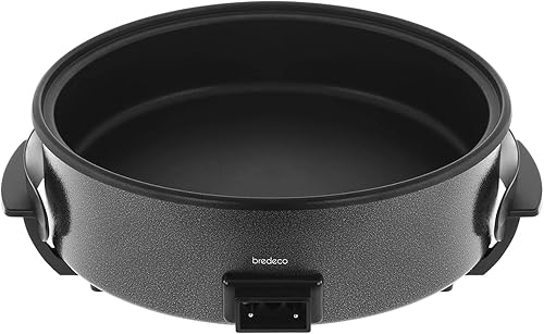 Bredeco BCPP 40-9 Poêle Électrique avec Couvercle Poele a Paella Electrique (Ø 40 cm, 1400 W, Hauteur Bord 9 cm, Revêtement en Téflon) Noire
