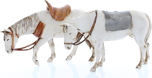 Moranduzzo 2 Chevaux Assortis pour Crèche de 10 Cm Échelle 1:20 - Figurines de Crèche Indestructibles - Peinture Finition à la Main, Produit Officiel, Fabriqué en Italie, Sculpteur M. Landi