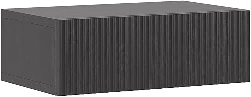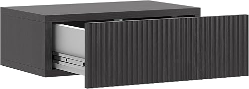 Selsey Table De Chevet Suspendue avec Tiroir À Lamelles 50 x 17 cm Table De Nuit Frêne Portland Noir Nolie