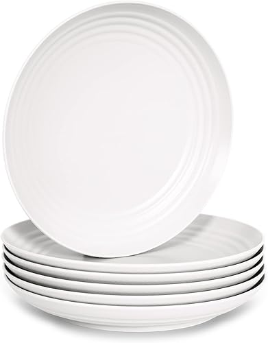 Lot de 6 Vaisselle Classique en Plastique Dur Réutilisable et Incassable pour Fêtes et Événements Blanc (25 cm)