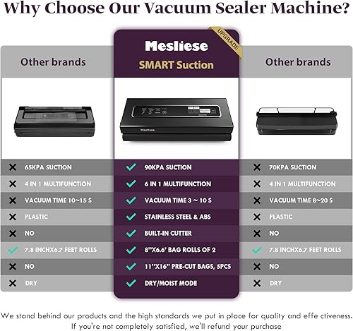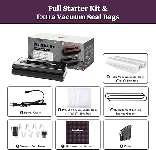 Mesliese Machine Sous Vide Alimentaire 90Kpa Puissant Appareil de Mise Sous Vide, 6-en-1 Compact Machine D'emballage des Aliments, 2 Rouleaux de Sac et 5 Sacs Prédécoupés (Gris Foncé)