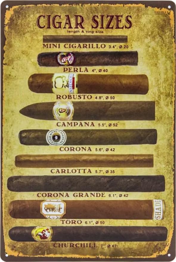 LUCKYLINDE Plaque en tôle pour fans de cigares, amateurs et gourmands « Vue d'ensemble des cigares » - Vintage - 20 x 30 cm