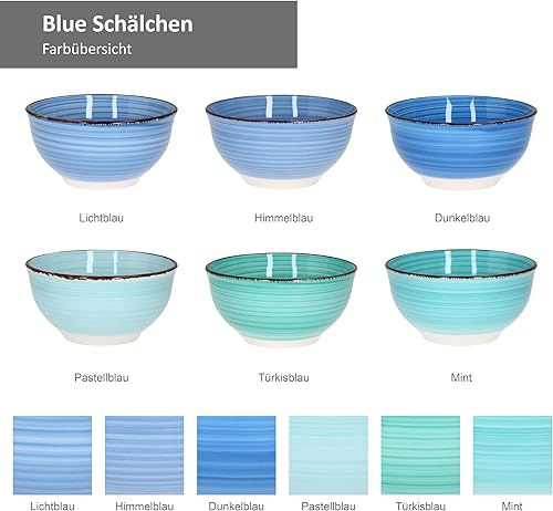 MamboCat Blue Lot de 6 coupelles à sauce Ø 12 cm I Petit bol 200 ml I Set de 6 tons bleus différents I Bol à dessert I Bol à dipp Passe au lave-vaisselle