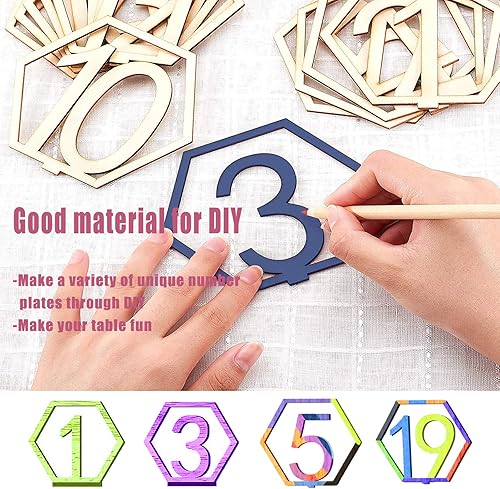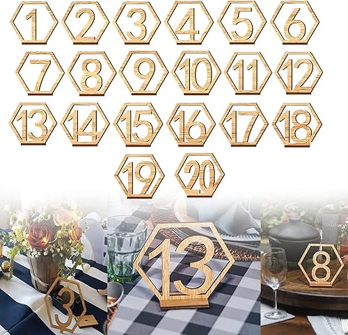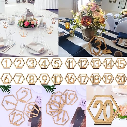 Bogoro Cartes de Table en Bois Hexagonales, 1-20 Numéros, Mariage, Fête, Événements ou Restauration