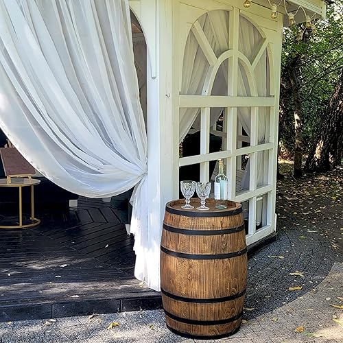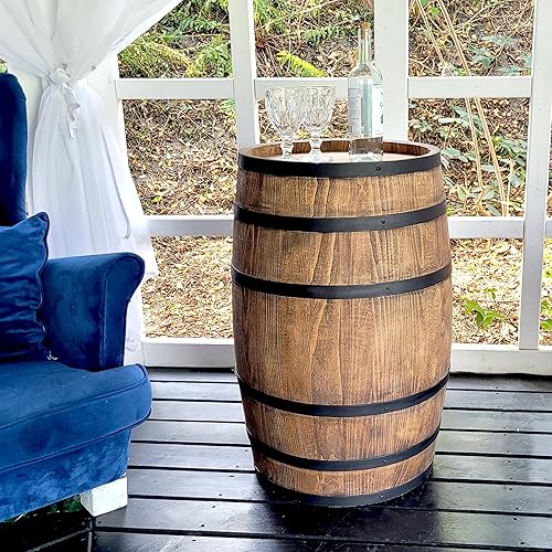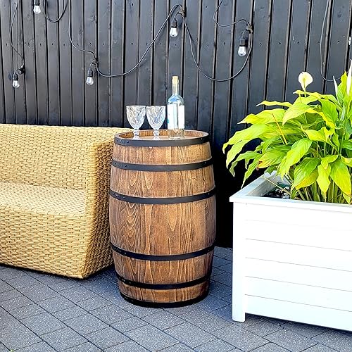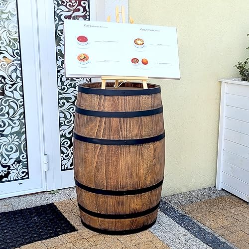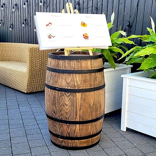 weeco Décoration tonneau en bois - Style rustique - Porte-cartes de menu pour bars, hôtels, restaurants - Tonneau à vin - Table haute - Table de bière ou réservation de boissons - Wengé 80 x 50 cm