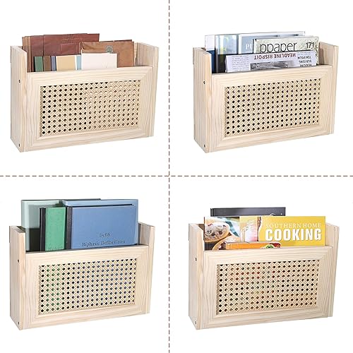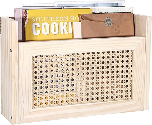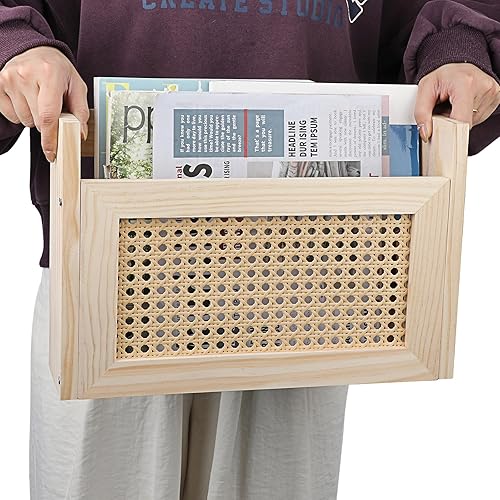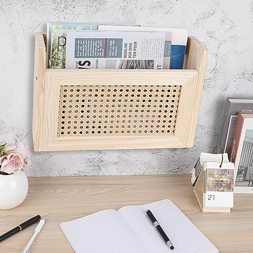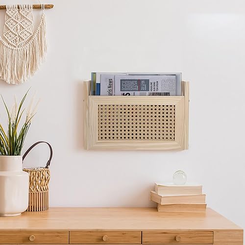 TOLIDA Porte-revues mural en bois naturel tissé - Porte-revues - Porte-documents pour livres et papiers - Pour bureau, table de chevet, salon, salle d'attente