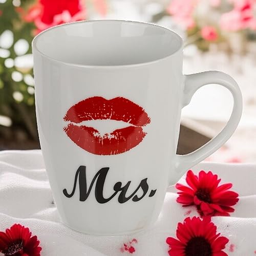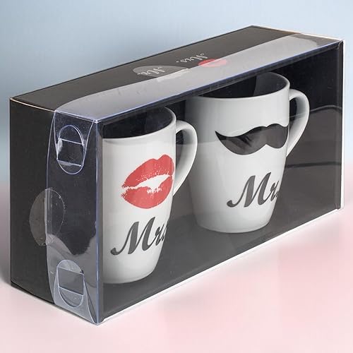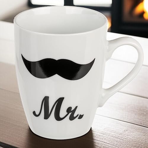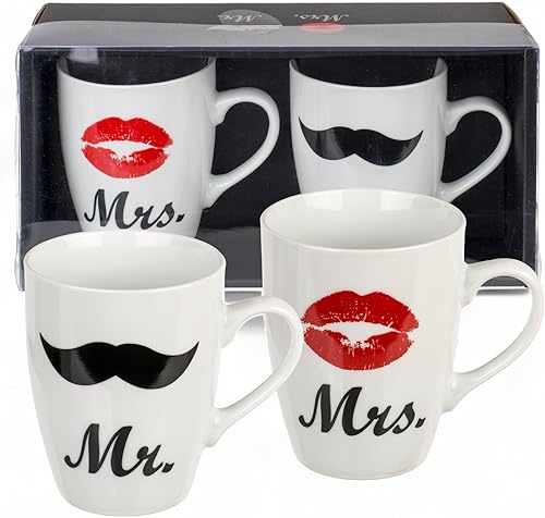 MIJOMA Lot de 2 tasses à café de qualité supérieure Mr. & Mrs. - Design moderne et vif, cadeau parfait pour les couples, les mariages, les fêtes de pendaison de crémaillère - 300 ml - Passe au