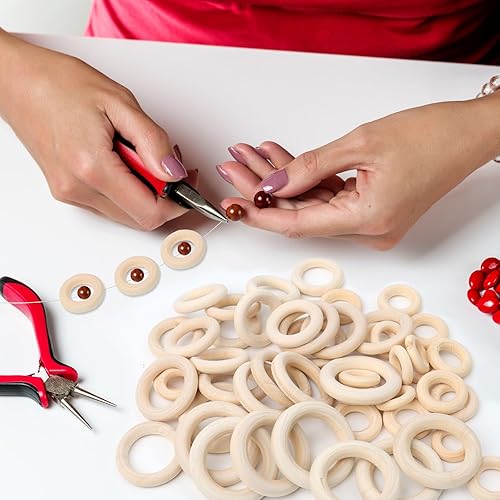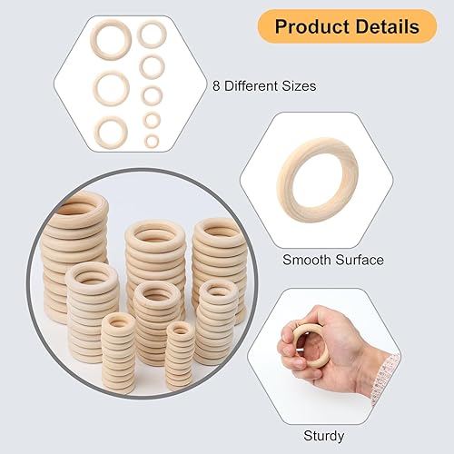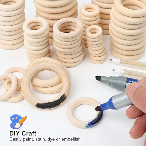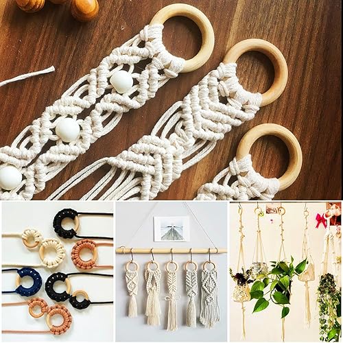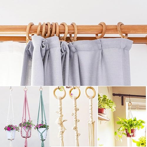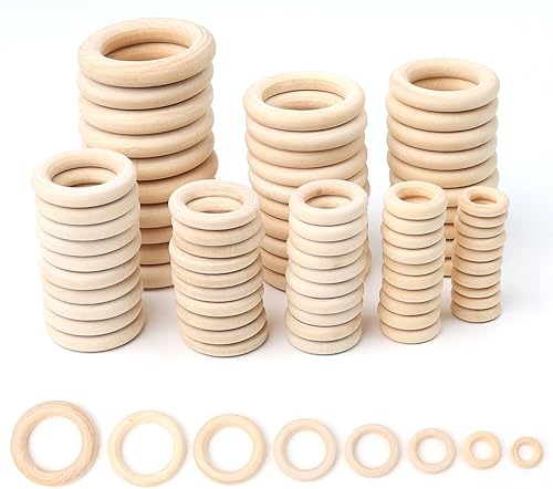 GOTRUST Lot de 80 anneaux en bois pour le bricolage, macramé inachevé, anneaux en bois naturel, anneaux de rideaux pour bricolage, bijoux, pendentifs, décoration suspendue (diamètre 20, 25, 30, 35,