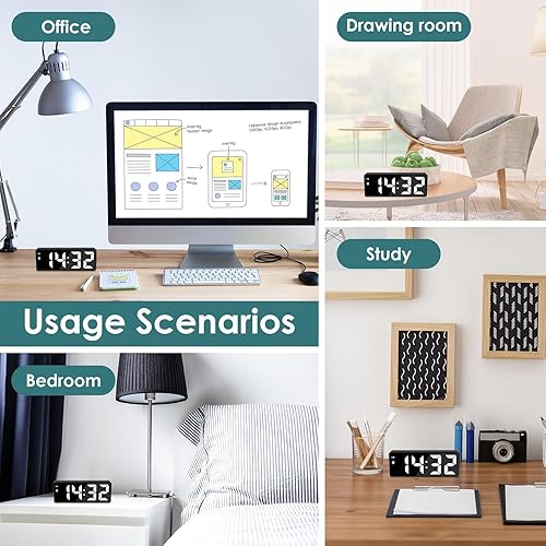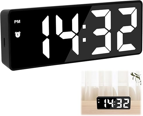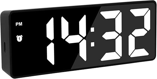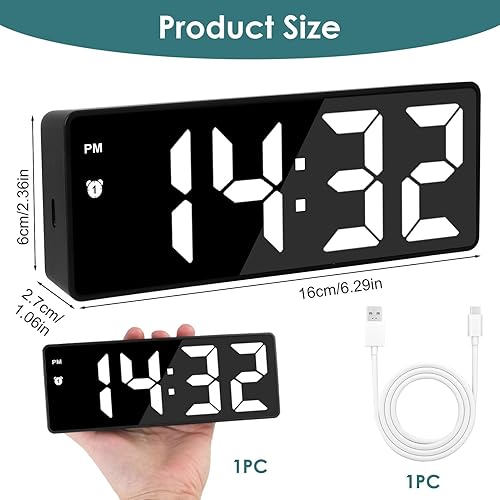 Réveil Numérique avec Écran LED, Horloge Numérique Réveil LED avec Adaptateur 6,7' Grand écran Horloges avec Touche Snooze Port de Recharge USB 3 Niveaux de luminosité (Lumière Blanche)