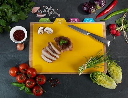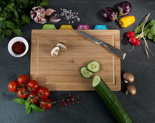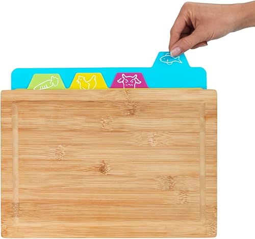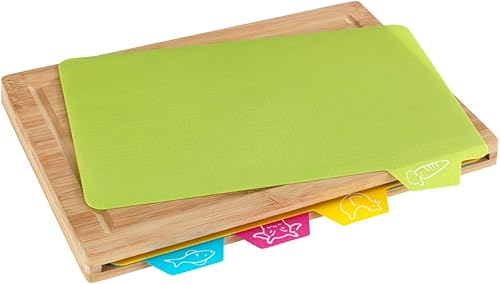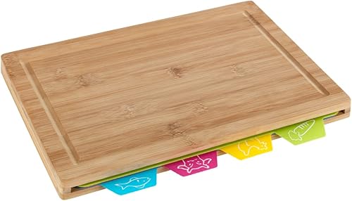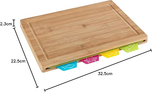 WENKO Planche à découper Bella - Planche de cuisine, planche à découper avec rainure à jus et 4 tapis de coupe amovibles individuellement, Bambou, 32.5 x 2.3 x 22.5 cm, Marron