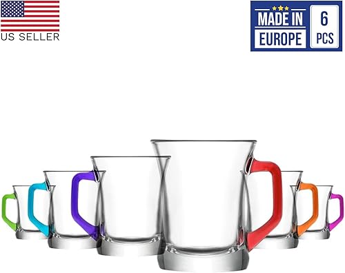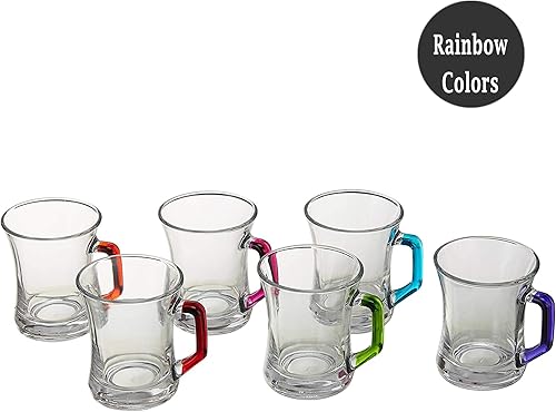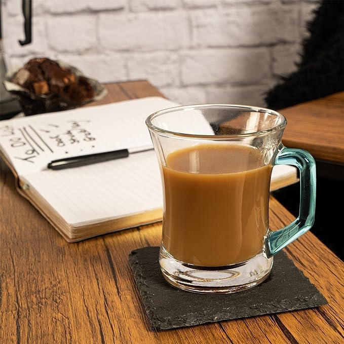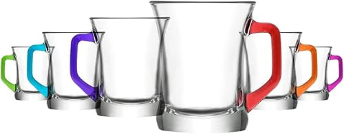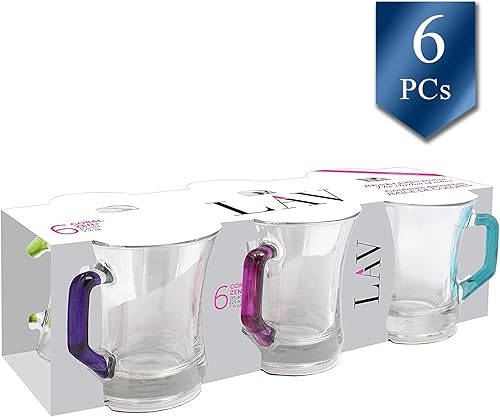 Lav Lot de 6 tasses à boisson chaude en verre avec base colorée pour thé, café, latte, cappuccino (207 ml)