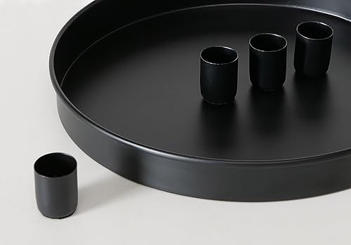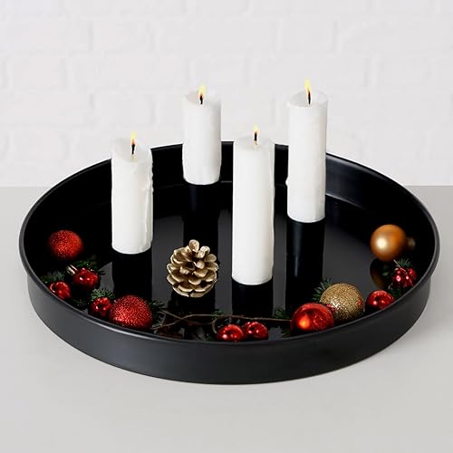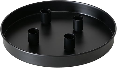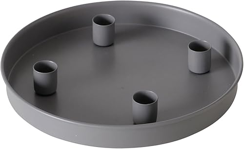 Plateau à bougie magnétique rond pour bougies à tige - 25 cm - Gris - En métal avec 4 supports magnétiques - Plateau décoratif pour les fêtes de l'Avent