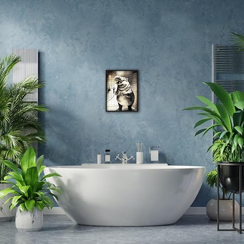 KUSTOM ART Affiche murale décorative série animaux ameublement de toilette hippopotame en douche impression artistique sur papier couché 40 x 30 cm sans cadre