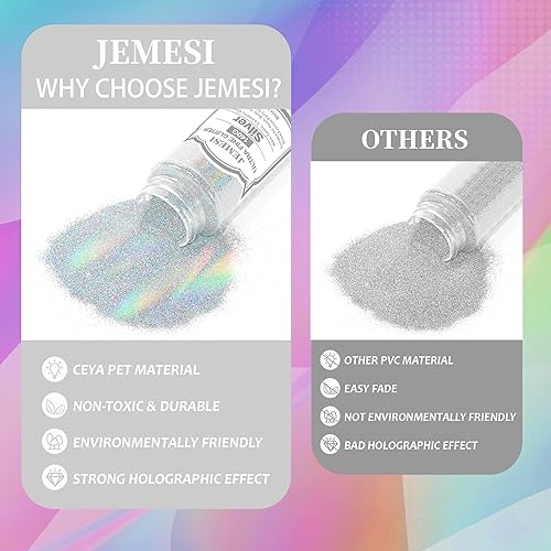 JEMESI Poudre de paillettes argentées, 140 g - 0,2 mm - Poudre pailletée ultra fine pour résine époxy, bricolage, peinture tumbler fabrication de bougies, paillettes cosmétiques, poudre à ongles