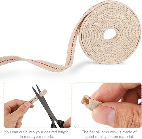 Mèches Lampe à Huile, 1,2cm Longueur Totale 3m Mèches Plates Coton Lampe à Huile Mèches Plates Coton Huile Paraffine Mèches Lampes à Huile avec Point Rouge Lampe à Pétrole Paraffine(Blanc)