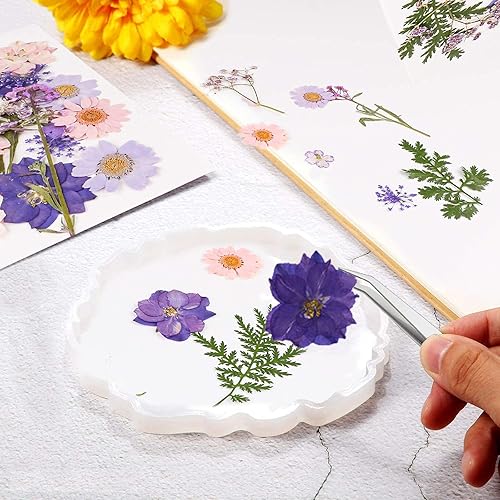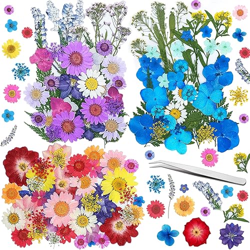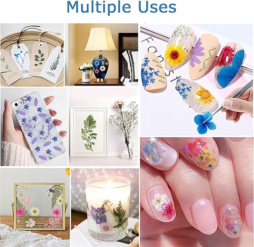Frasheng 120Pcs Fleurs Sechees Naturelles,Vraies Fleurs pressées séchées,Avec une pince à épiler,Fleurs séchées pour Résine,Scrapbooking,Bougie Bricolage,Fabrication Artisanale de Pendentif de Bijoux