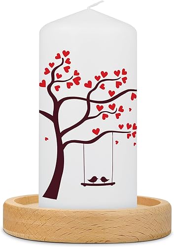 GRAVURZEILE Petite bougie – Design arbre en forme de cœur – Décoration de table pour mariage, fiançailles – Cadeau pour elle et lui pour la SaintValentin comme preuve d'amour – Bougie pilier de