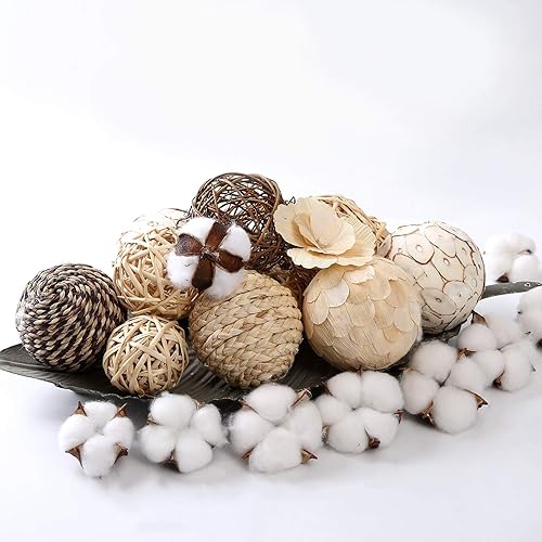 CIR OASES Boules décoratives Assorties en rotin - Boules en Osier - Boules en Coton pour Bol et Vase - Boules de Remplissage - Boules d'orbes - Remplissage de Centre de Table - Décoration d'intérieur
