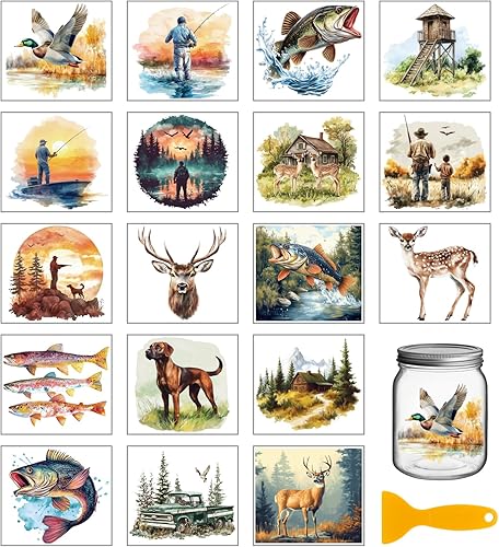 GLOBLELAND 18 feuille D'Autocollants de Transfert de Chasse et de Pêche 3.9x3.6 pouces Décalcomanies de Transfert de Chiens de Chasse et de Canard Décalcomanies de Transfert de Bar de Cerf Colorées