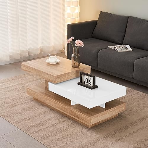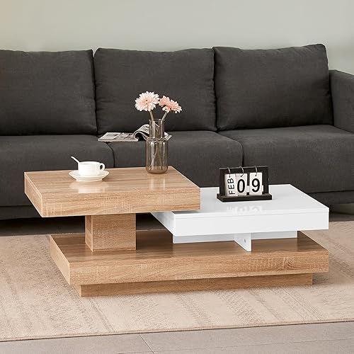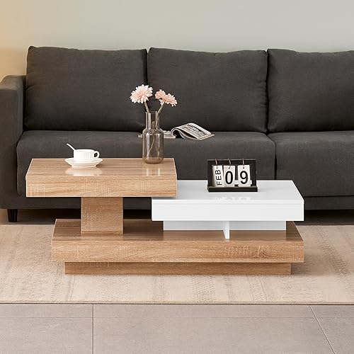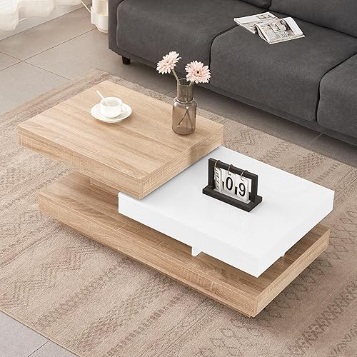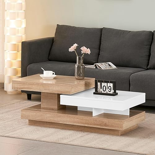 JaHECOME Table à café rotative avec lumères variées contrôlées par Le Portable, Table de Salon en Bois Moderne