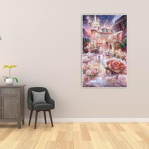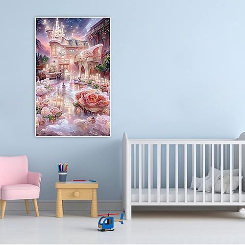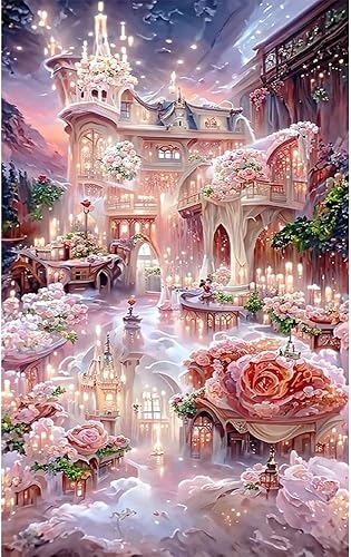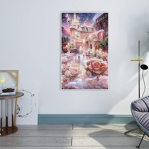 DCIDBEI Ai Diamond Painting Château 40x60 cm Diamond Painting Rose Maison de Rêve Adultes Peinture Diamant Peinture par Numéros Broderie Diamant Cottage aux Roses Peinture par Numero Adulte Paysage