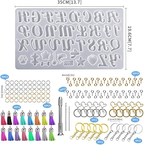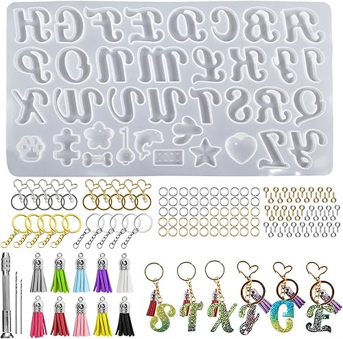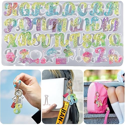 Bekecidi Lot de 140 Moules en Silicone en Forme de Lettres de L'alphabet pour Moulage de Résine Époxy - Moules en Résine pour Porte-clés, Pendentifs, Bijoux, Loisirs Créatifs