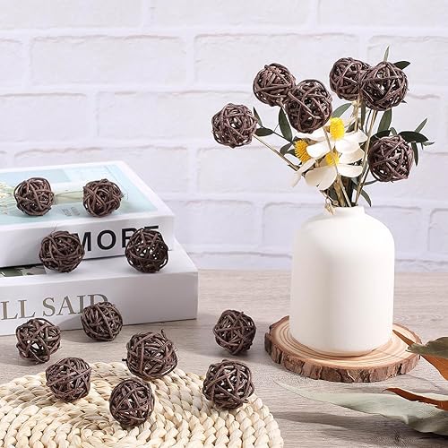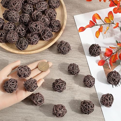 SUNNYCLUE 40 Petite Boule Décorative en Rotin et Osier pour Centre de Table Bol Rond de 3mm Boules de Noix de Coco Marron Décoration pour Mariage Noël Halloween Arbre Table Fête Bricolage