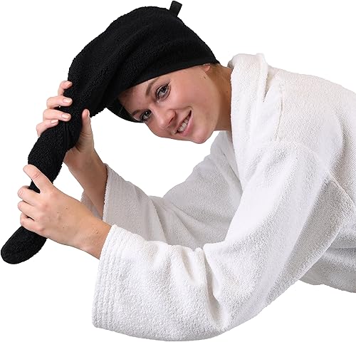 Betz Serviette Turban 100% Coton Serviette sèche-Cheveux Wrap Serviette de Toilette éponge Couleur: Noir
