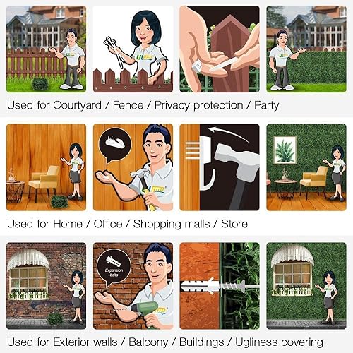 bimiti Lot de 12 murs de plantes artificielles - 60 x 40 cm - Protection UV - Pour décoration de paysage ou de fête de mariage