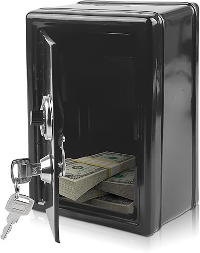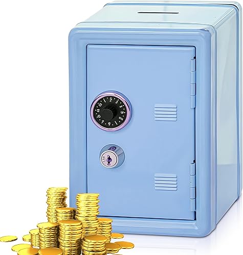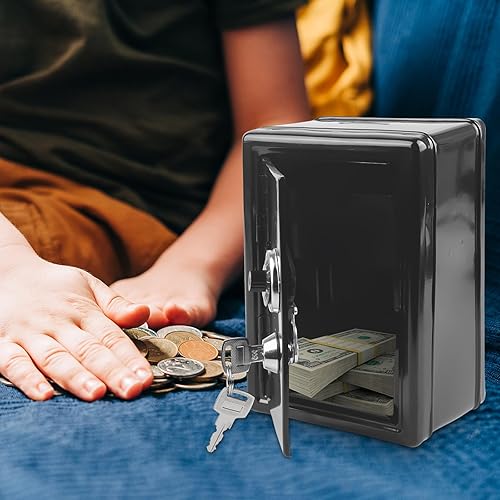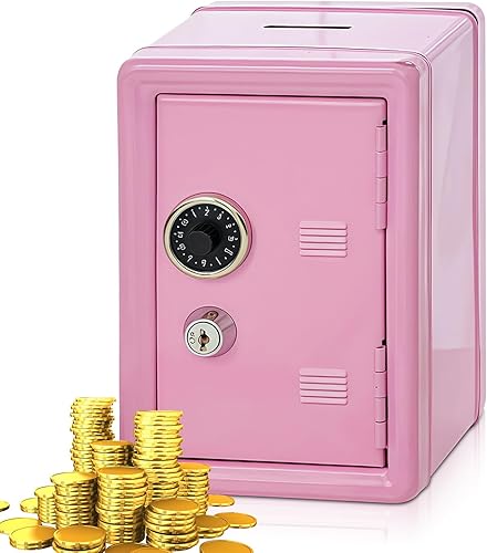 Tirelire coffre-fort avec fente pour insérer de l'argent - Mini coffre-fort en métal avec 2 clés - H : 18 cm L : 12 cm l : 9,5 cm - Caisse d'épargne pour boîte à monnaie, économise (rose)