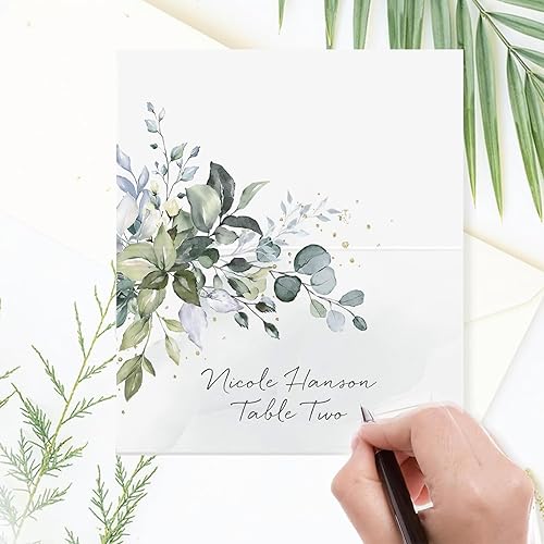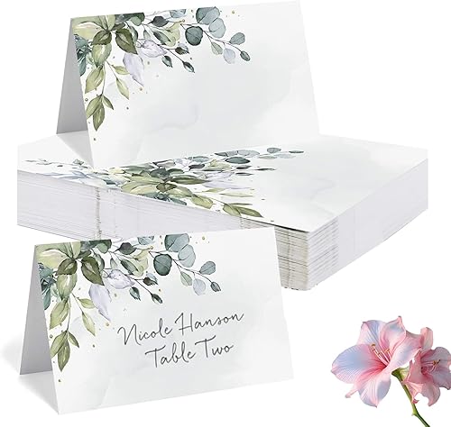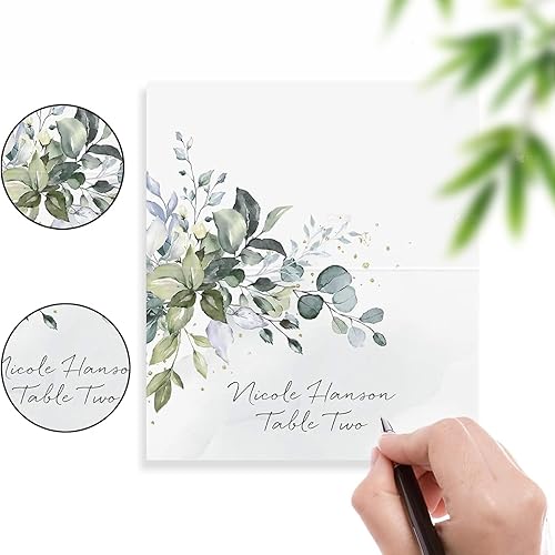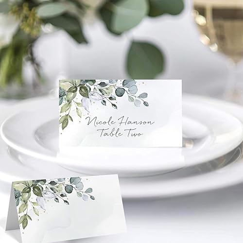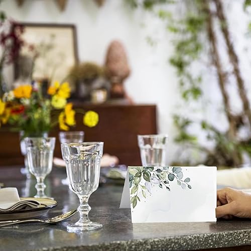 Lot de 50 cartons de table de mariage, 9 cm x 5 cm, pour anniversaire, confirmation, communion, baptême, fête, etc. Décoration de table (eucalyptus eucalyptus