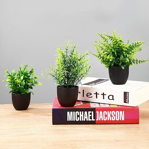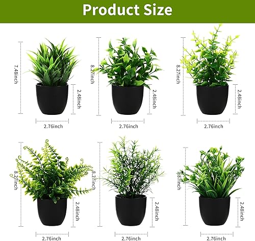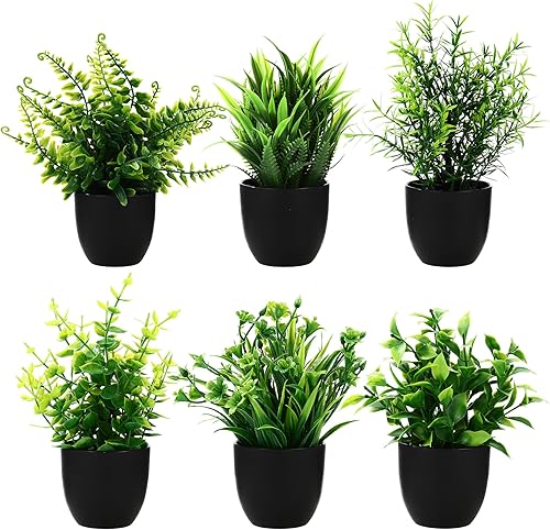 BUCOMTU Lot de 6 Plantes Artificielles Interieur, Mini Plantes Artificielles, Fausses Plantes avec Pots, Plantes en Plastique pour Bureau, Chambre, Salle de Bain, Cuisine et Salon