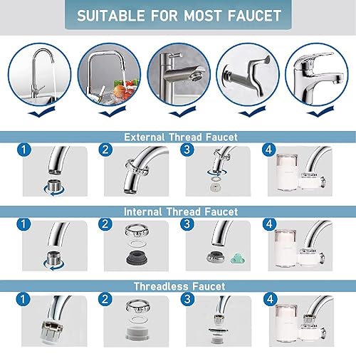 XNTONG - Filtre à eau robinet, Filtre robinet anti calcaire, Convient pour la maison et la cuisine, Filtre eau robinet, Réduit le chlore, le sable, les métaux lourds et les odeurs désagréables