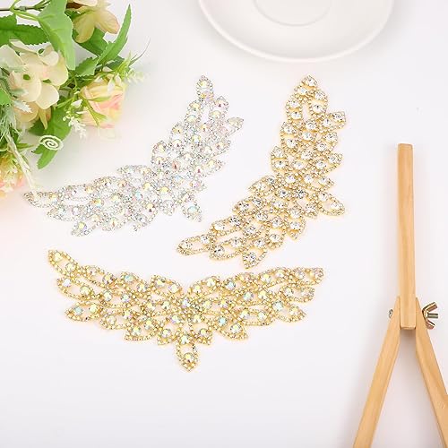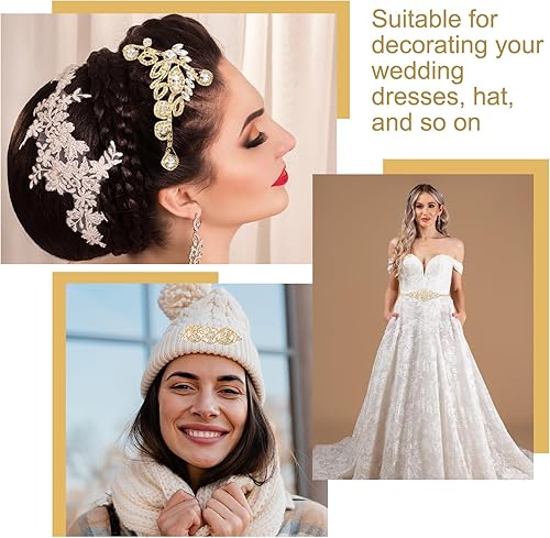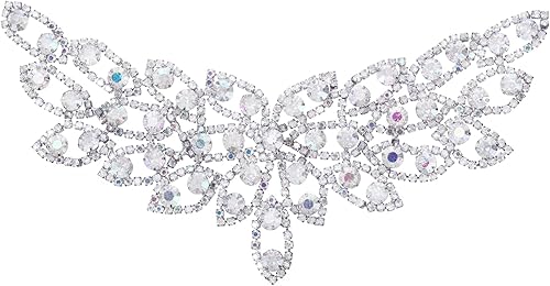 sourcing map Applique en strass en cristal, décoration de robe de mariée pour femme, accessoires manuels à coudre, appliques à coudre pour robe de bal, robe de mariée, ceinture AB, argenté