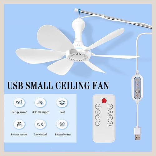 BININBOX Mini ventilateur de plafond mobile - 4 niveaux de réglage du vent - Alimentation USB - Diamètre : 42 cm - 5 W - Télécommande