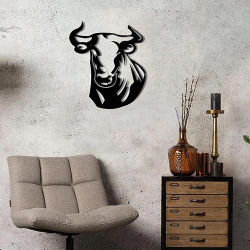 Sculpture murale en fer - Tête de taureau - Décoration murale en métal - Tête de taureau - Art abstrait - Décoration intérieure et extérieure