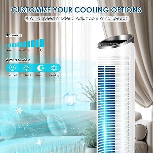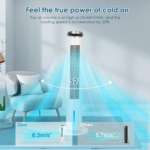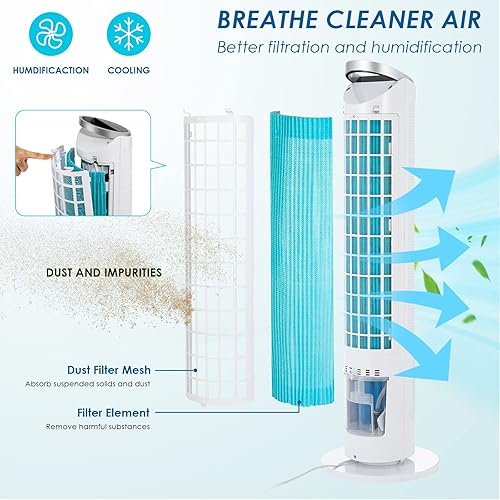 LIFERUN Ventilateur Refroidisseur Tour de 101 cm avec Télécommande, 4 en 1 Avec Refroidissement, Humidification de Nettoyage, Minuterie 8 Heures, Silencieux pour Chambre à Coucher, Salon, Blanc