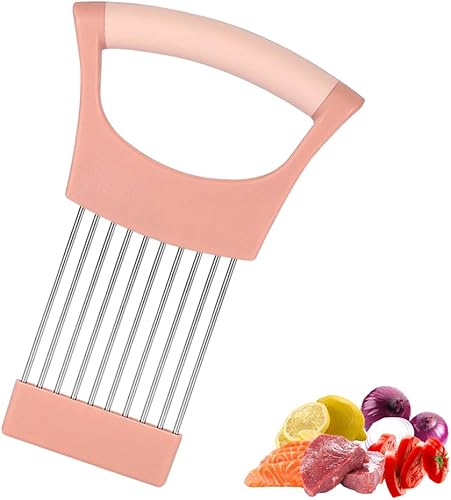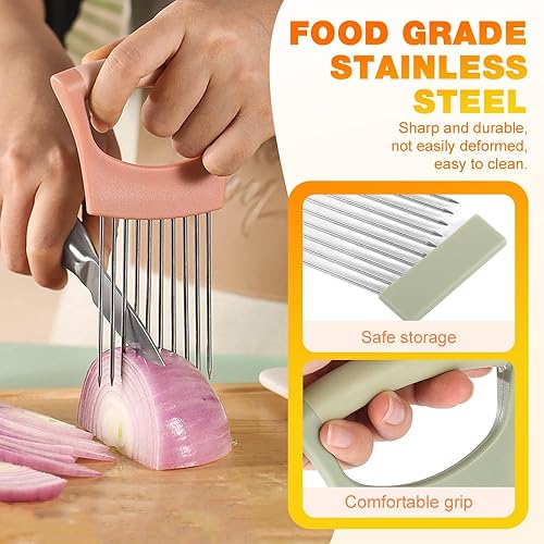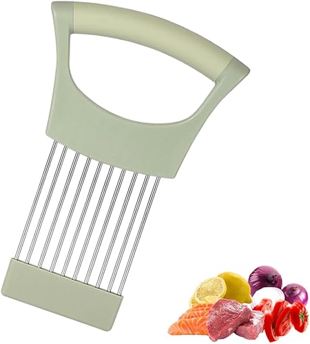 Porte Tranche Oignons, Acier Inoxydable Coupe-Citron, Support à Oignons Amélioré, Coupe-Légumes, Alimentaire Tranche Assistant, Tout en Un Porte Oignon, Outil de Coupe pour Viande Légumes Fruit (vert)