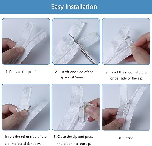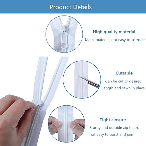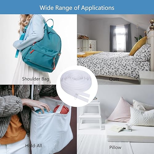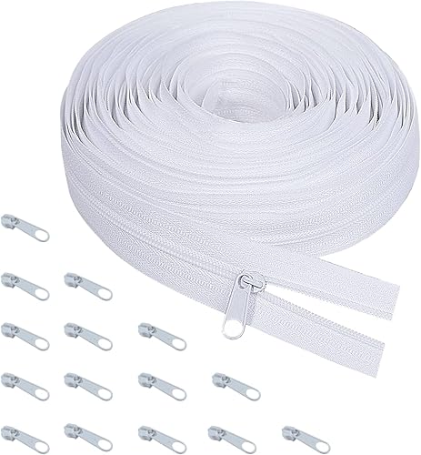 Fermeture éclair sans fin avec fermeture éclair de 5 mm, 5 m de long - Fermeture éclair sans fin - Au mètre - En nylon blanc - Avec 15 embouts - Pour vêtements, linge de lit, coussins, sacs