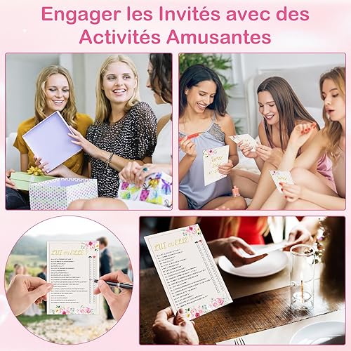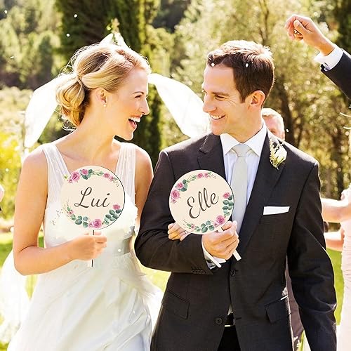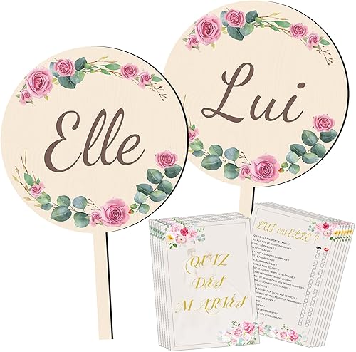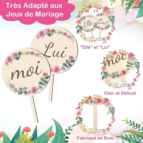 Bomtop Decoration Mariage, 2 Pièces Elle et Lui Pancarte en Bois et 12 Feuilles Quiz des Mariés Cartes de Questions, Jeu de Mariage pour les Invités, Jeu Elle et Lui pour Mariage, Jeux Mariage