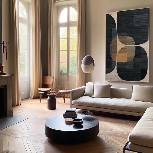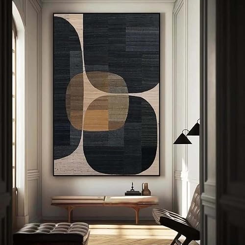Affiche Art Geometrique Poster Brun Foncé Tableau Decoration Murale Abstrait 50x70 cm Moderne Impression Sur Toile Décoration Chambre Salon Affiche Boho Peinture Avec Cadre