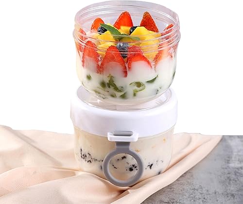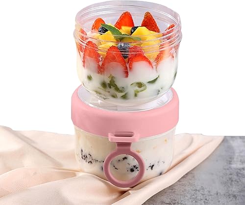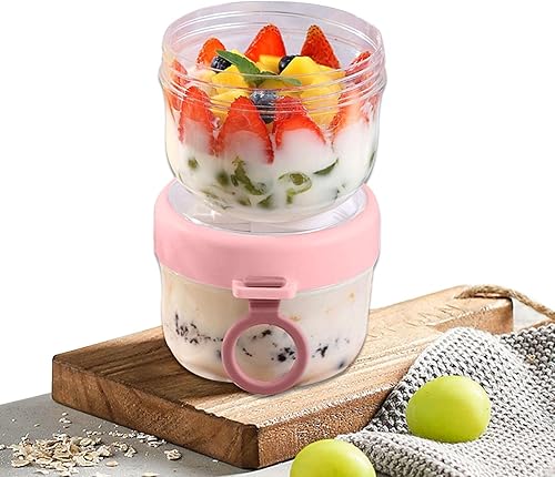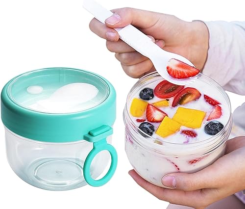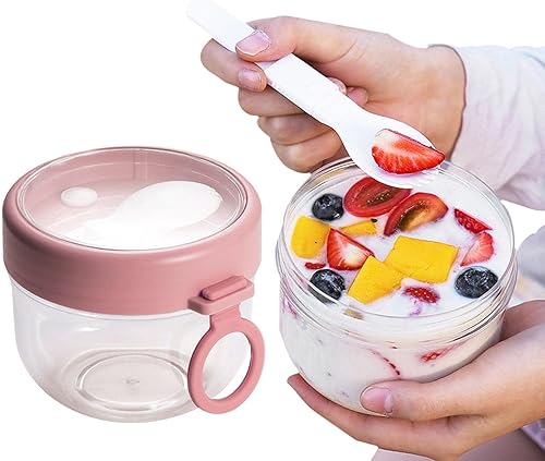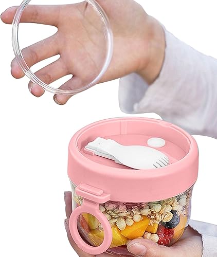 Overnight Oats Verre | Récipient d'avoine | Gobelet portable à flocons d'avoine avec couvercle et cuillère, contenants 600 ml pour la préparation des repas